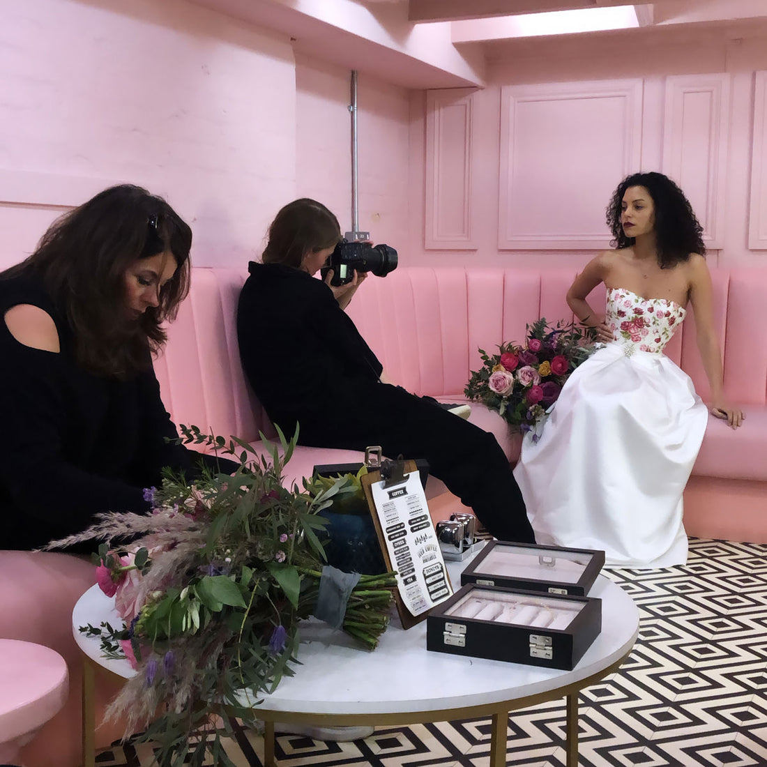 Our friends, David Western Couture, very kindly lent us the bespoke wedding dresses, and the vibrant flower bouquets were put together by Smell the Roses. These bold designs were ideal for representing our vision, particularly with the bridal market’s growing appeal towards vivid colours and striking blooms.