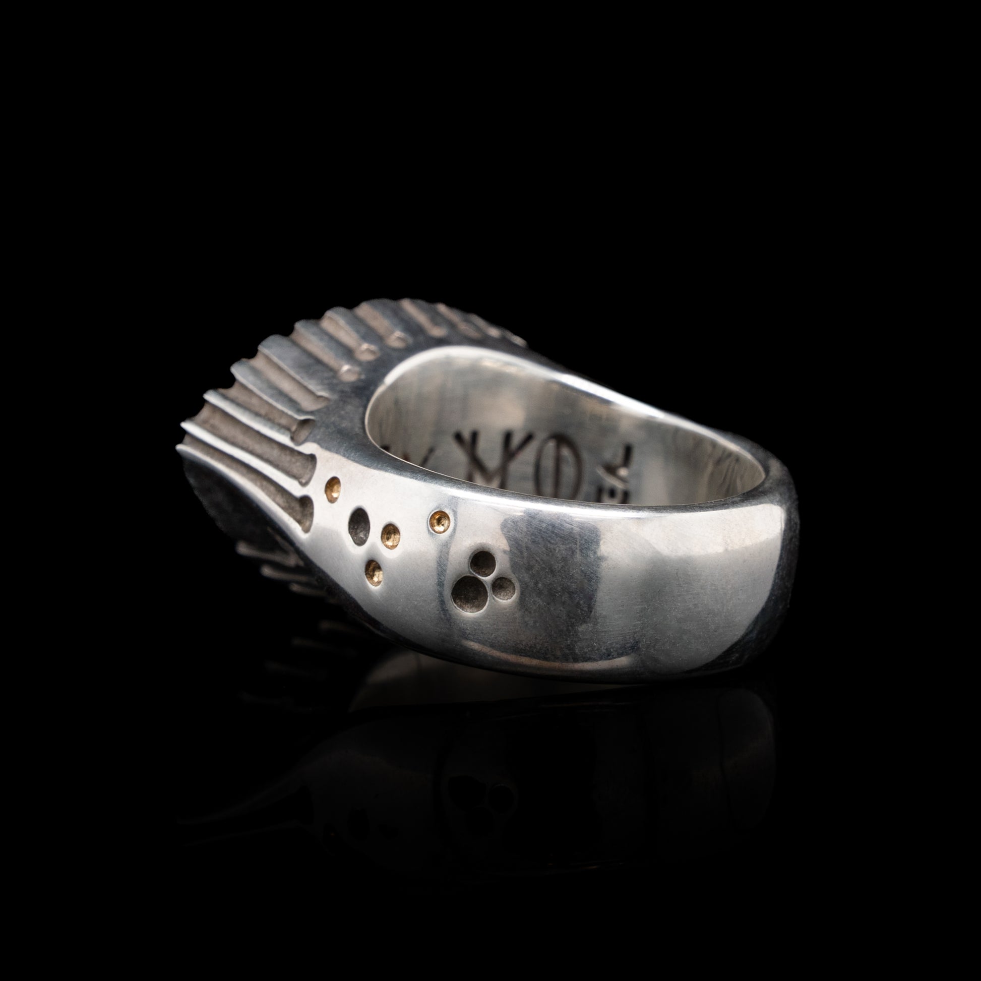 A Vision Etched In Starlight Full Eye Statement Ring in Silver with Gold Iris