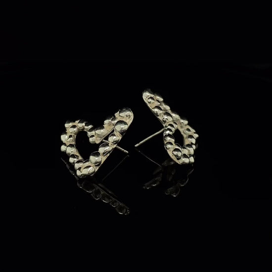 Sterling Silver bubble heart stud earrings. Height 19mm, width 25mm, weight 4.5g each earring.