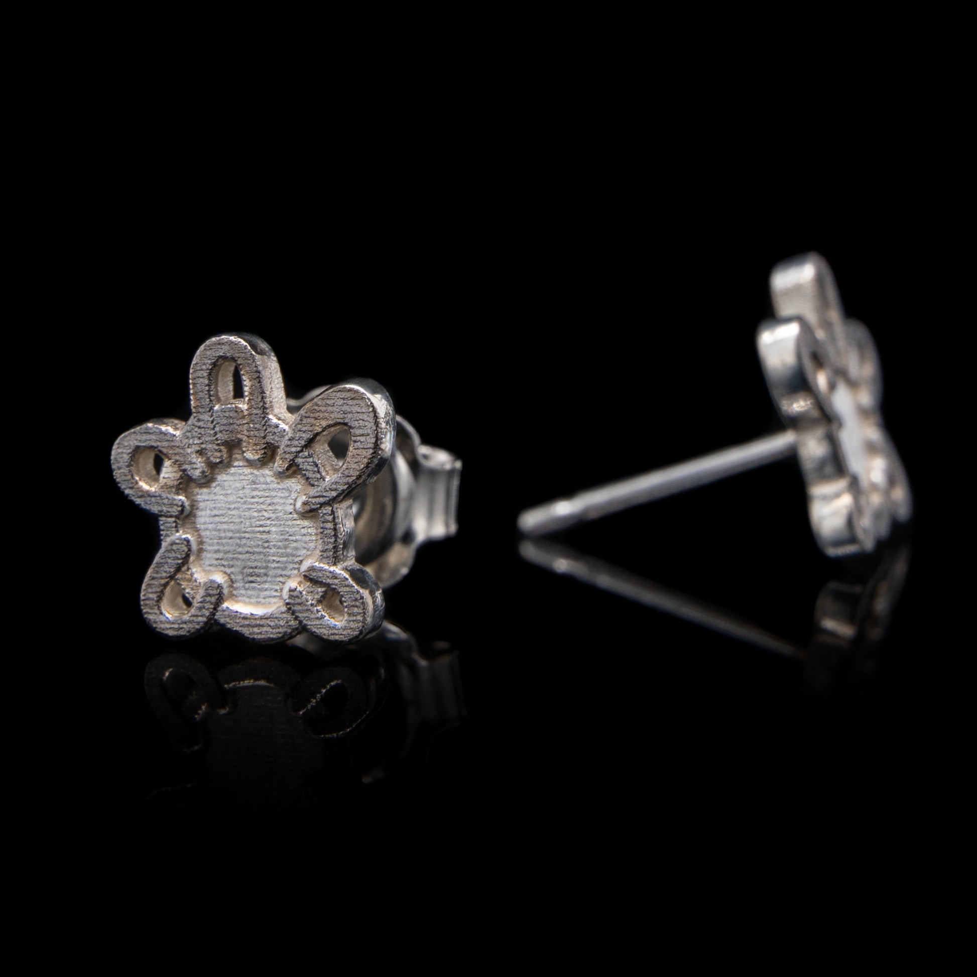 Everyman Hands Sterling Silver studs. Solid Silver Frosted background and black rhodium plated outline. Weight 2.3g. Dimensions: 10 mm x 9mm x 1.6mm. Each pair is thoughtfully presented within a black eco branded velvet- feel pouch on a logo'd black card & a Signed Certificate of Authenticity. Open edition.