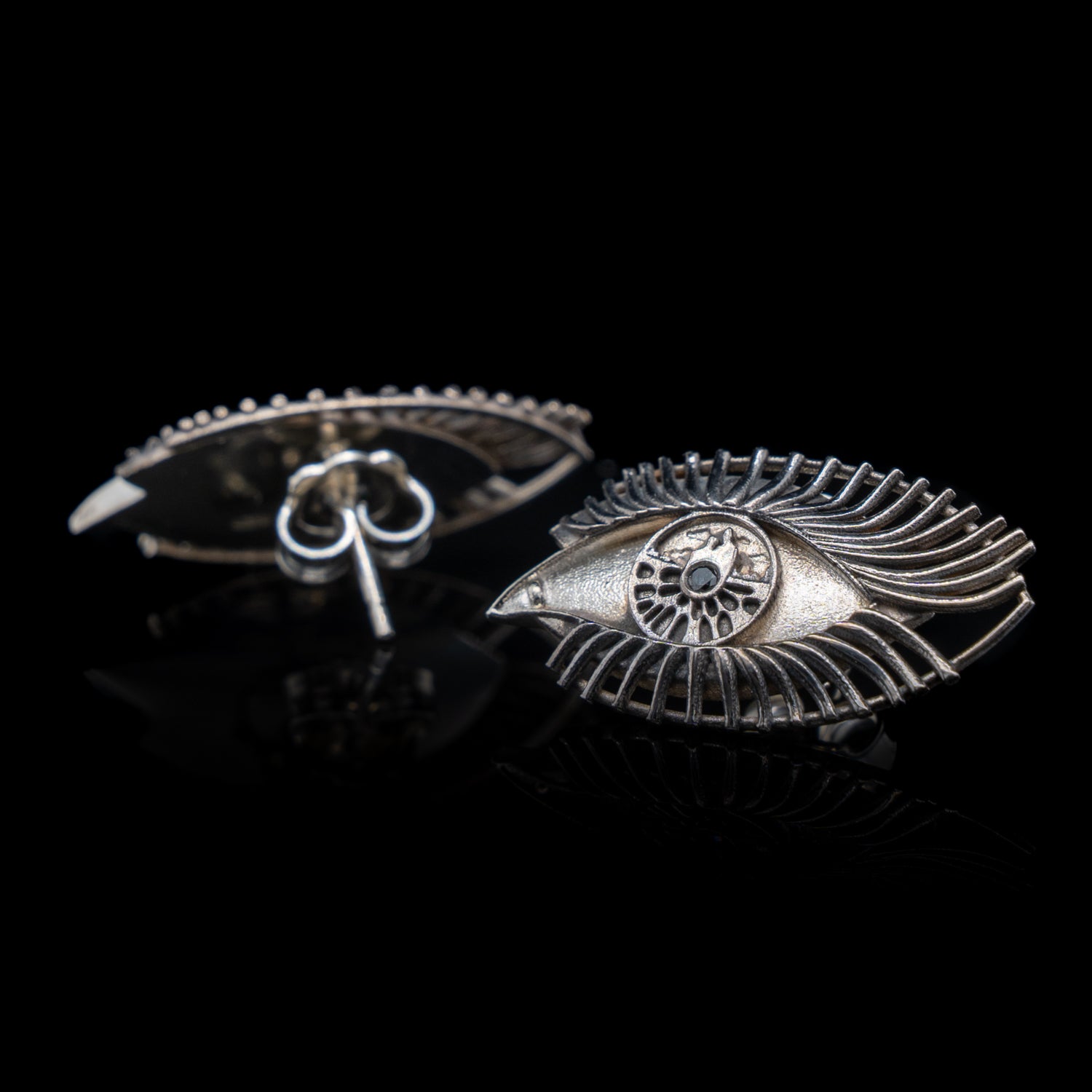 Once In A Lifetime Eye Stud Earrings In Silver with Black Diamonds