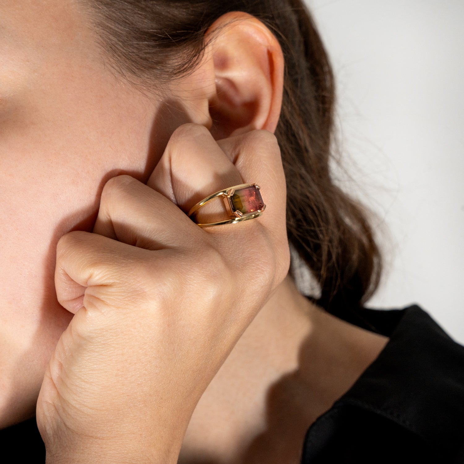 Watermelon Tourmaline Split Band Ring
